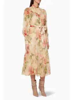 Zimmermann Espionage Swing Yoke Midi Dress in Antique Peony Size 1 / AU 10