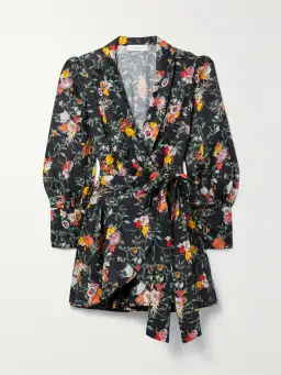Zimmermann's mini dress is printed with an array of florals that pop against a black backdrop. It's cut from lightweight linen in a fully adjustable wrap silhouette with billowy sleeves and a ruffled skirt that moves beautifully. Style yours with sandals and a clutch.