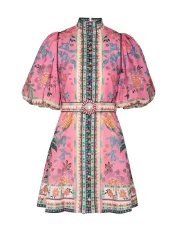 Zimmermann The Ginger Buttoned Mini Dress in Pink Multi Size 2/Au 12
