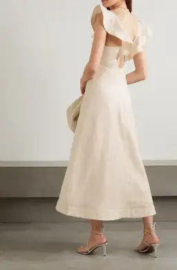 Zimmermann Halcyon Cutout Ruffled Shell-Embellished Linen Midi Dress Cream Size 3 /Best Fits AU 12