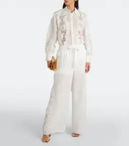 Zimmermann Halliday Lace Flower Shirt Size 0P and Pant Size 0 Set Ivory