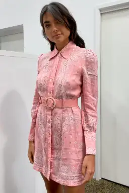 Zimmermann Heathers Bandana Shirt Mini Dress Pink/Print Size 1 / Au 10