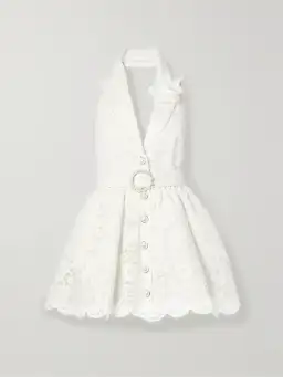 Zimmermann High Tide Belted Embellished Corded Lace Halterneck Mini Dress Ivory