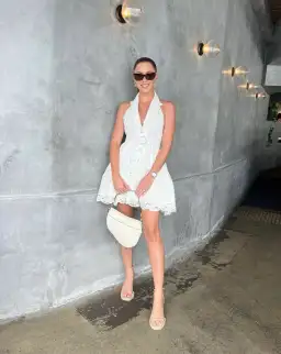 Zimmermann High Tide Belted Embellished Corded Lace Halterneck Mini Dress Ivory Size 0 / Size AU 8
