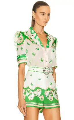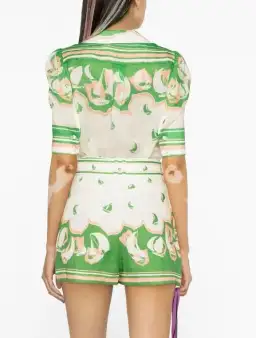 Zimmermann High Tide Sailboats Shirt and Shorts Set in Green Sailboats
