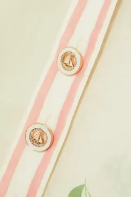 Shirt Size 0 (Au 8). A short sleeve ramie shirt featuring short sleeves, a classic collar and placement print, finished with nautical inspired buttons and a chest patch pocket.