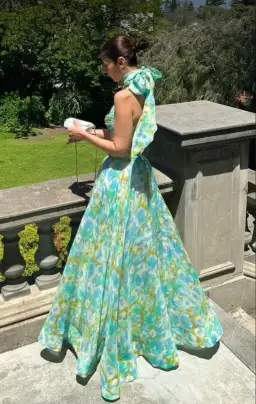 Zimmermann High Tide Twist Crop Bodice & Maxi Skirt Set Aqua Ikat Floral Size 0P/ AU 6