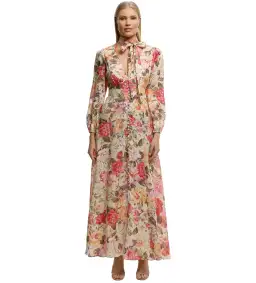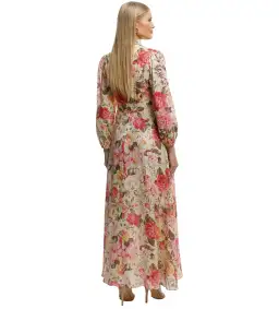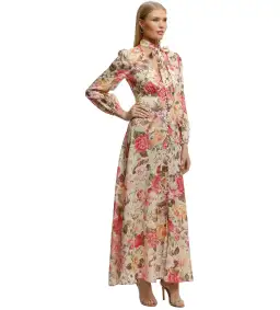The Honour Plunge Long Dress by Zimmermann will have you look ultra-fresh and chic! Floral perfection at its finest, the floral maxi dress features a V-neck with balloon sleeves with elasticised cuffs. The fitted empire waist flows down to a full skirt with decorative buttons. Inherently feminine and sophisticated, hire it for a wedding reception or a bridal shower.