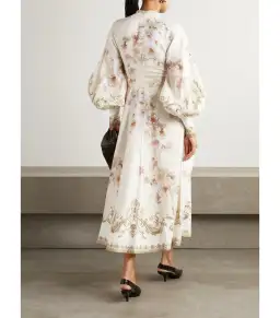 Zimmermann The Hypnotic Buttoned Midi Dress in Cream Peony Size 0 / AU 8