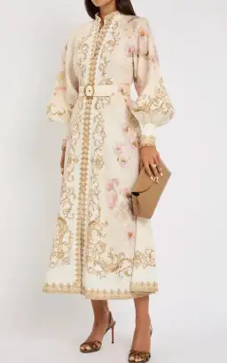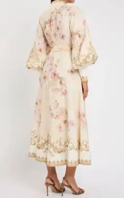 Zimmermann Hypnotic Buttoned Midi Dress White Peony Size 3 au 14