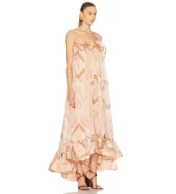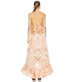 Zimmermann Illuminate Flounce Midi Gown in Guava Agate Size 6