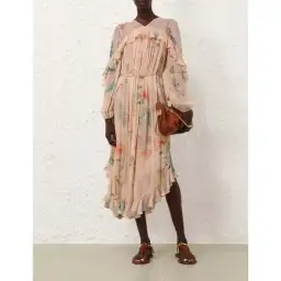 Zimmermann ILLUMINATE CAPE DRESS PEACH HYDRANGEA size 4