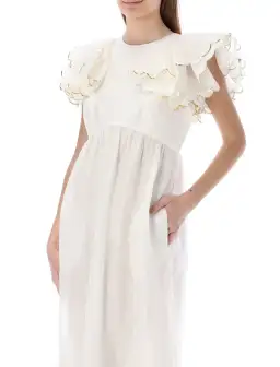 Zimmermann Dancer Scalloped Midi Dress in Ivory Size 0/AU 8
