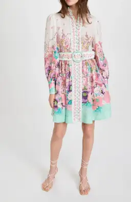 Zimmermann Jude Buttoned Mini Dress Aqua Gradient Floral