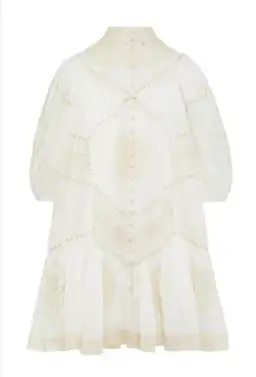 Zimmermann Jude Guipure Lace Trim Mini Dress in Cream Size 1/AU 10