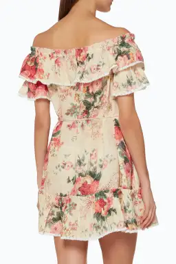 Zimmermann Laelia Frill Tier Short Dress Meadow Floral