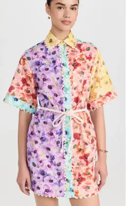 ZIMMERMANN LIGHTBURST TRIMMED SHIRT MINI DRESS SPLICED SIZE 1 AU 10