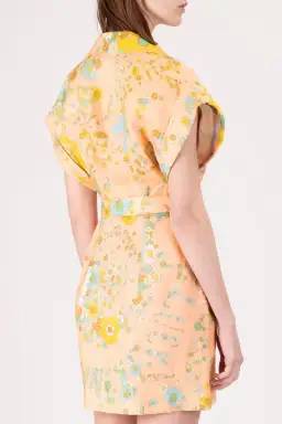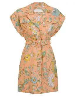 Zimmermann Lola Roll Cuff Mini Dress in Peach Floral