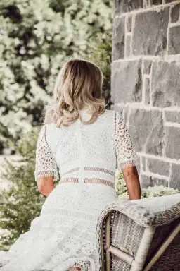 The Zimmermann Lovelorn Flutter Midi Dress captures timeless femininity with its soft cotton fabrication and romantic silhouette. It features a plunging neckline framed by delicate ruffled trims, flutter sleeves that move gracefully, and a fitted bodice that flows into a gently flared, tiered skirt. Finished with a concealed back zip for a seamless fit, this dress exudes effortless elegance—perfect for daytime events, garden gatherings, or any occasion that calls for refined simplicity.