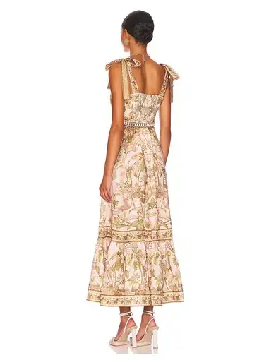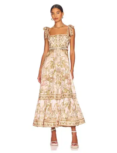 Zimmermann Lyre Picnic Dress in khaki and pale pink palm print