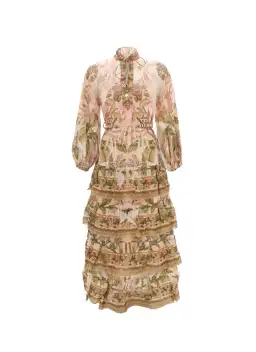 Zimmermann Floral Tiered Lyre Billow Midi Dress Size 2/AU 12