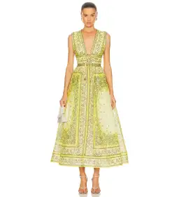 Zimmermann Matchmaker Bow Long Dress in Yellow Bandana Size 2 AU 12