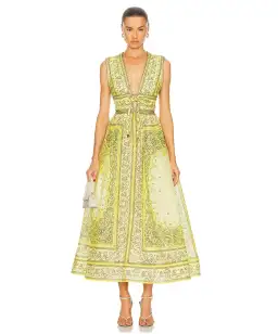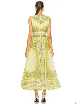 Zimmermann Matchmaker Bow Long Dress Yellow Bandana Print Size 0P / AU 6