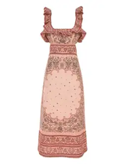 Zimmermann Matchmaker Frilled Midi in Pink Bandana Size 1/Au 10