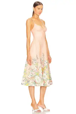 Embrace effortless elegance with the Matchmaker Picnic Dress in Buff/Coral Floral from the Resort 2024 Collection. Crafted from lightweight linen, this midi dress features a fitted bustier and a shirred back, creating a flattering and feminine silhouette. The adjustable shoulder straps ensure the perfect fit, while the relaxed midi skirt offers comfort and movement. Finished with side seam pockets and an invisible back zipper, this dress is both practical and stylish. With its charming floral print, it’s the ideal choice for a sunny picnic or a laid-back garden gathering.