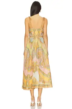Zimmermann Maxine Picnic Midi Dress Gold Paisley Size 0 / AU 8