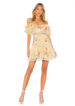 Zimmermann Melody Off Shoulder Mini Dress Mustard Floral Size 1 / AU 10