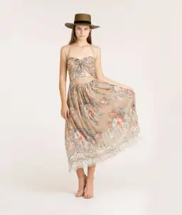 Zimmermann Anais Antique Floral Tie Dress in Nude Floral
