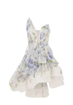 Zimmermann Natura Draped Mini Dress Blue Floral