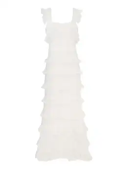The Natura Ruffle Dress in Parchment from Zimmermann's Spring 2024 Collection, Natura. It's a form fitting , knit dress featuring ruffled tiers throughout. With features including: