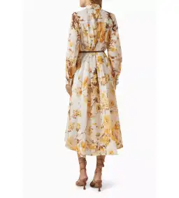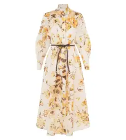 Zimmermann Ottie Tuck Shirt Midi Dress White Floral Size 4/AU 16