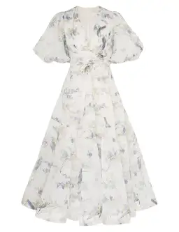Zimmermann Pleated Midi Dress Blue Birds Size 3 AU 14