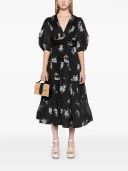 Zimmermann Pleated Midi Dress Black Iris Floral Size 2/ AU 12