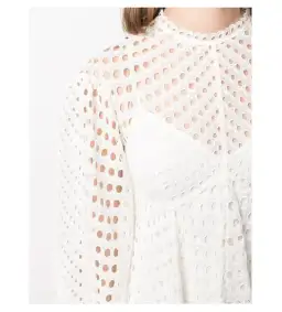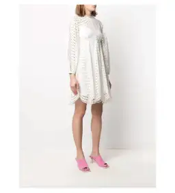 ZIMMERMANN Poppy Eyelet Mini Dress is a stunning addition to any wardrobe. Its short length paired with a classic white hue makes it a versatile piece for both day and night occasions. The dress features intricate eyelet detailing, showcasing the quality and design expertise of the renowned brand.