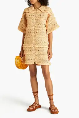 Zimmermann Postcard Crochet Mini Dress in Straw