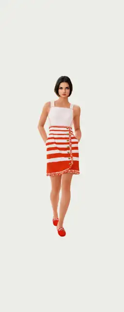 This is a beautiful Zimmermann mini dress with a navy/nautical inspired vibe. Featuring gorgeous red & white striped pattern, and stunning gold engraved buttons that go all the way down the dress length (see close-up pic of buttons). There are functional slip pockets on the sides, and a hidden zip at the back closes the dress. The straps are wide and they’re adjustable with the decorative buckles. The frayed trim completes the look. This dress is crafted from 100% high-quality cotton fabric, and is fully lined. It feels lovely against the skin. This sleeveless dress is perfect for a beach party, a yachting event, casual outing, or any event/gathering where you want to look amazing & fun. Pair it with your favourite sandals or deck shoes for a stylish nautical look.