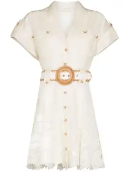 Featured in Zimmermann's Resort 2022 Collection, this Postcard shirt mini dress is defined by the broderie Anglaise. In a white colourway, this lightweight design is detailed with a flared hem and a waist-cinching belt.