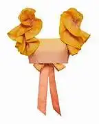 A silk linen organza bodice featuring tiered ruffles at the shoulders and a self tie back.