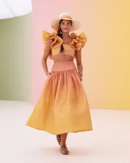 Zimmermann Postcard Ruffle Bodice and Maxi Skirt Set Orange Size AU 12