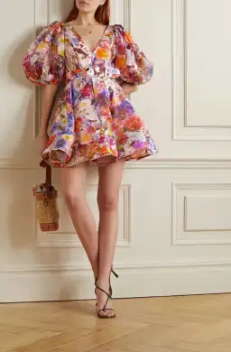 Zimmermann Prima Balloon Sleeve Mini Dress in Multi Floral