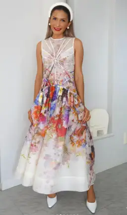 The Prima Panelled Midi Dress in Multi Floral from Zimmermann's Spring 2022 Collection, The Dancer.