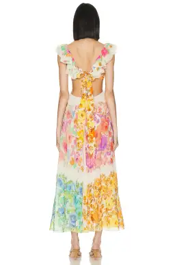 Zimmermann Raie Frill Shoullder Midi Dress Multi Floral