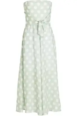 This breezy Zimmermann linen dress is accented with charming polka dots and ties at the waist, and can also be worn strapless. Simple monochrome sneakers are a great go-with for this piece.