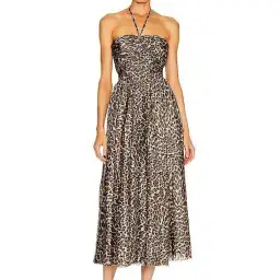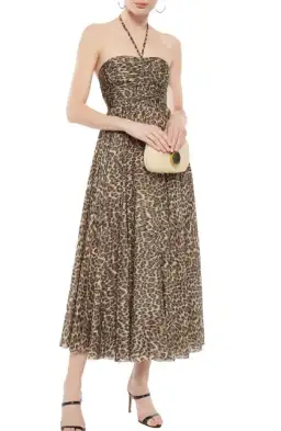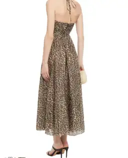 Zimmermann Ruched Leopard-Print Silk Halterneck Midi Dress Size 2/AU 12