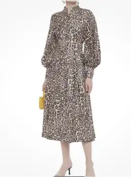 Zimmermann Sabotage Button Up Midi Dress Soft Leopard Size AU 8