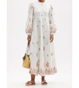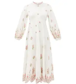 Zimmermann Poppy Floral-Embroidered Linen-Blend Midi Dress White Size 3/AU 14